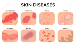 Discover the causes, symptoms, and treatments of major skin diseases like eczema, psoriasis, acne, and fungal infections. Learn how emotions, diet, and immunity affect your skin health naturally and medically.